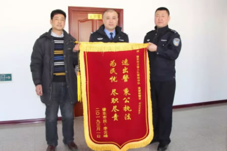 | 2019年3月1日,肇東市民李云峰來到市交警大隊(duì),將一面寫有“速出警秉公執(zhí)法,為民憂盡職盡責(zé)”的錦旗送給了黃慧斌和劉偉剛兩位警官,感謝他們不辭辛苦連續(xù)工作,還原... |