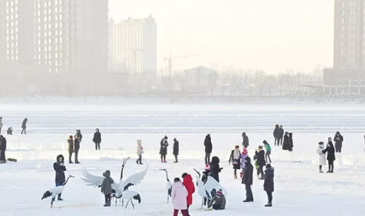 | 1月10日,肇東市民在人工湖冰面上嬉戲、游玩,感受“遠(yuǎn)近高低各不同”的迷人雪景,與遠(yuǎn)處的樓群構(gòu)成一幅民生和諧的畫面。 該市以“賞冰樂雪”系列活動為主角,充分發(fā)揮... |