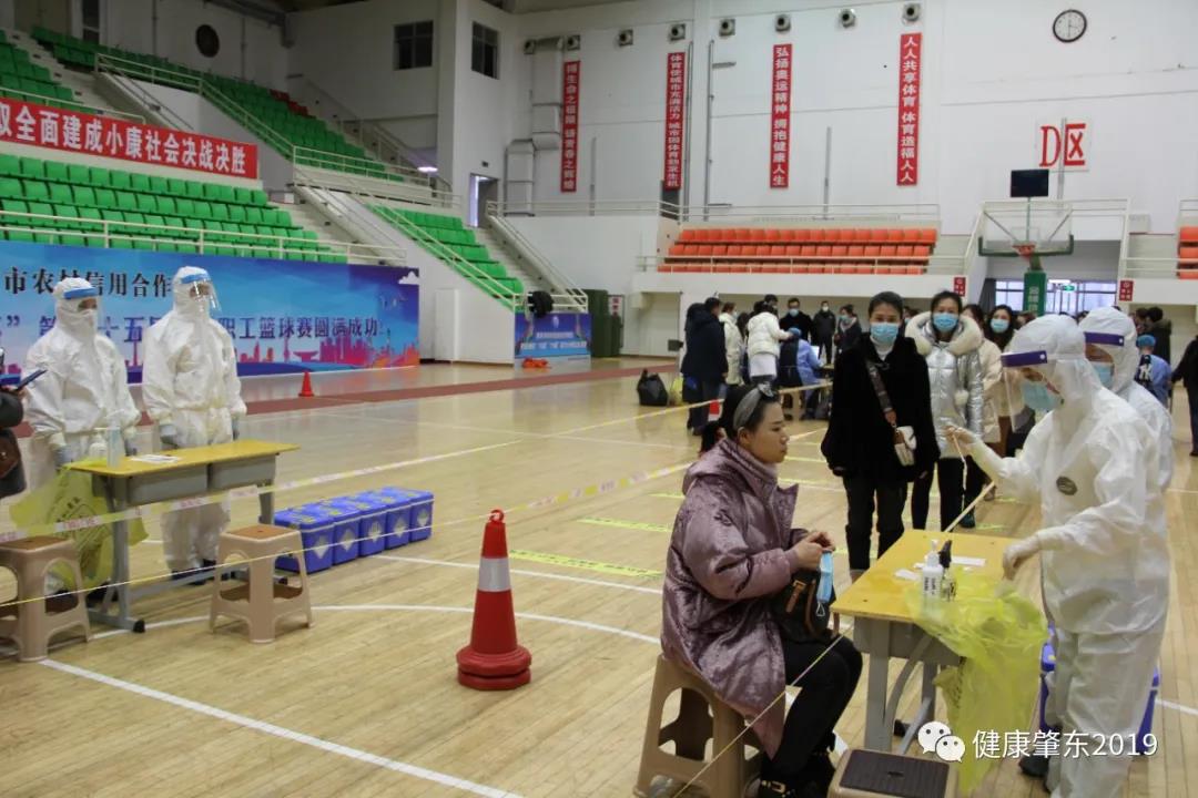 登記區(qū)運用信息化技術(shù),使用電腦、身份證掃碼儀、掃碼槍進(jìn)行身份登記和條碼識別,使登記環(huán)節(jié)的速度大大提高。采樣區(qū)按照1:10混采方式操作,每采樣一人按照七部洗手法進(jìn)行消毒一次,一人采樣,一人收儲。兩組采樣隊通道使用隔離帶進(jìn)行間隔,登記區(qū)與采樣區(qū)11米距離,中間用一米黃線間隔,居民在等候區(qū)綠色地標(biāo)帶處等候,由民警站崗維持順序,等候區(qū)外的居民秩序由小社區(qū)干部佩戴疫情防控工作人員的紅色袖標(biāo)站崗維持秩序。居民進(jìn)入登記區(qū)后腳踏在黃色隔離帶上,保證間隔距離,進(jìn)出兩個通道,現(xiàn)場秩序井然,當(dāng)所有采集任務(wù)結(jié)束后,人民醫(yī)院和第一醫(yī)院的轉(zhuǎn)運人員分別把標(biāo)本轉(zhuǎn)運箱送至等候在體育館外的本單位負(fù)壓救護(hù)車上,人員清場之后,疾控部門的消殺人員對現(xiàn)場進(jìn)行了消殺處理,整個演練過程進(jìn)行了2個小時。之后參加演練的單位召開會議,進(jìn)行了總結(jié),對發(fā)現(xiàn)的問題提出了整改意見,為我市下步全員核酸采集起到了很好的示范作用。