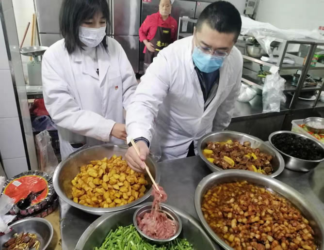 會務(wù)期間,市場監(jiān)督管理局工作人員每天在參會代表們用餐前一小時(shí)到達(dá)現(xiàn)場,對參保單位進(jìn)行現(xiàn)場監(jiān)督,確保參保單位人員規(guī)范操作,嚴(yán)格按照食品加工流程規(guī)范管理。