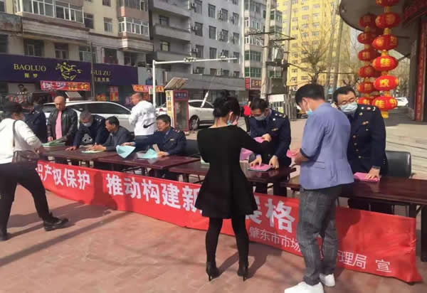 4月21日,知識產(chǎn)權(quán)監(jiān)督管理股全體同志會同相關(guān)股室工作人員,在我市四道街兄弟家電城門前設(shè)置宣傳臺并懸掛宣傳橫幅。采取電子滾動屏幕、發(fā)放宣傳材料等方式開展知識產(chǎn)權(quán)保護集中宣傳活動,本次活動共發(fā)放宣傳資料近480余份。活動現(xiàn)場,執(zhí)法人員進(jìn)行了《專利法》、《專利法實施細(xì)則》、《黑龍江省專利保護條例》等法律法規(guī)的宣傳,并接受現(xiàn)場咨詢。