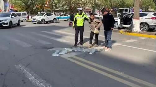 5月11日早上7點(diǎn)42分,肇東交警大隊(duì)城鎮(zhèn)三中隊(duì)中隊(duì)長(zhǎng)牛玉強(qiáng)帶領(lǐng)輔警王鑫巡邏至西湖小區(qū)路口東20米處附近時(shí),發(fā)現(xiàn)一騎摩托車男子突然意外摔倒,車上早餐散落一地,見此情況,執(zhí)勤人員立即上前詢問男子有沒有受傷,得知男子只是腰部擦傷,并無(wú)大礙。為避免早高峰時(shí)期引起交通堵塞,民警一邊指揮過往車輛減速安全通過,一邊迅速同熱心群眾將男子和摩托車扶到路邊安全地帶,民警叮囑男子以后要小心騎車,勸誡他騎摩托車必須佩帶安全頭盔,安全文明駕駛。該男子對(duì)民警的熱心幫助表示感謝,此舉動(dòng)也受到廣大群眾的一致好評(píng)。