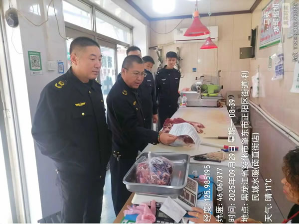 隨著中秋、國慶“兩節(jié)”消費旺季臨近,為守護市民餐桌安全、規(guī)范節(jié)日肉類市場秩序,肇東市農(nóng)業(yè)農(nóng)村局牽頭,聯(lián)合市市場監(jiān)督管理局、市公安局食藥環(huán)偵大隊組建專項執(zhí)法檢查組,深入城區(qū)農(nóng)貿(mào)市場、生鮮超市、肉類專賣店等重點經(jīng)營場所,開展肉類食品安全聯(lián)合執(zhí)法檢查行動,以“監(jiān)管+服務(wù)+共治”三維發(fā)力,為節(jié)日市場筑牢安全屏障。