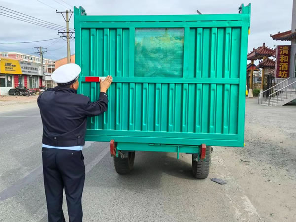 同時,積極開展“亮尾行動”。民警深入田間地頭和農戶家中,為沒有粘貼反光標識和反光標識陳舊的農用車輛及農業(yè)機械粘貼反光標識,消除事故隱患。農民朋友有的是沒時間或不知道到哪里買反光標識,宣傳民警親自上門免費粘貼,為他們解決了實際困難,農民朋友表示由衷的感謝。