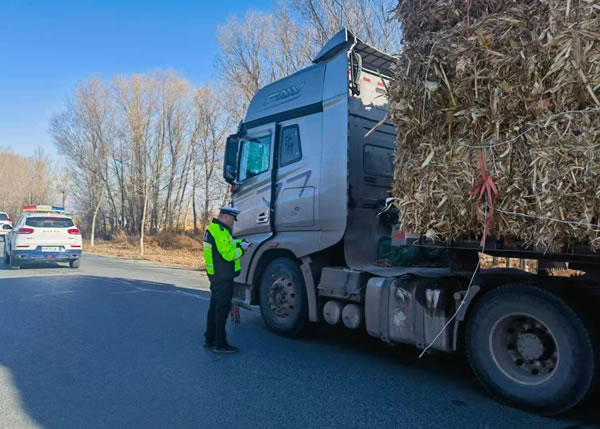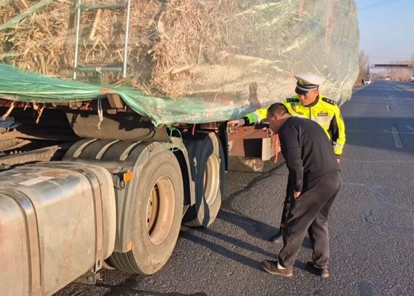 “師傅,您這車苫布沒固定牢,行駛中容易被風(fēng)吹開,秸稈灑落不僅影響交通,還可能引發(fā)事故,我們幫您加固一下。”在檢查現(xiàn)場,每當(dāng)發(fā)現(xiàn)苫布松散、捆綁不牢的車輛,民警都會主動協(xié)助駕駛員重新遮蓋,調(diào)整苫布位置、拉緊繩索、扣緊卡扣,反復(fù)檢查確認穩(wěn)固后才放行。并再三叮囑駕駛員途中要定時檢查,遇大風(fēng)、降水等天氣務(wù)必減速慢行,用實際行動贏得了駕駛員的理解與配合。