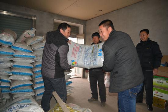 2月27日解永杰(右一)組織農(nóng)民裝運(yùn)化肥。
