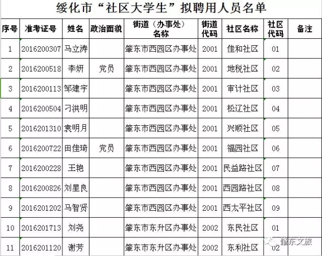 按照綏化市選聘“社區(qū)大學(xué)生”考試工作總體安排,經(jīng)過筆試、面試、體檢和考察等程序,我市33名考生為擬聘用人員(1名懷孕考生暫緩聘用),現(xiàn)予以公示,公示期為5個工作日。聯(lián)系電話:0455-7784522。