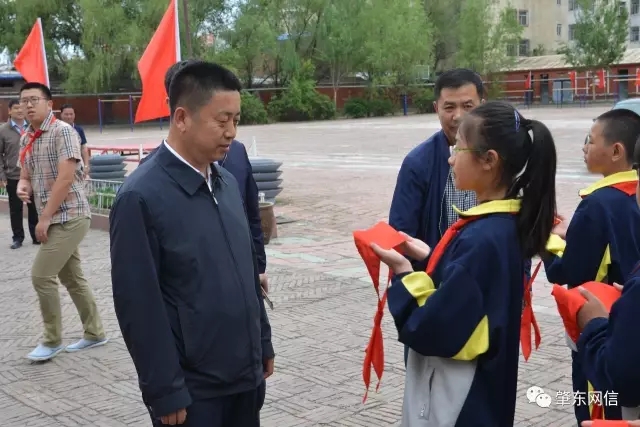 節(jié)日的校園處處歡聲笑語。進入校園,四名小學(xué)的學(xué)生代表熱情地為李延春獻上鮮艷的紅領(lǐng)巾,以表歡迎。