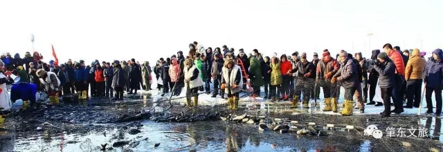 進(jìn)入冬季,肇東的沿江旅游牌同樣格外吸睛。在澇洲鎮(zhèn)大似海祭湖醒網(wǎng)儀式上,冬捕鑿冰捕魚在充滿薩滿風(fēng)情的舞蹈中開始了。漁工們將長約800米大網(wǎng)從冰下的一個個鐵鉤子中如穿針引線般穿過后展開,一條條泛著銀光的各類魚兒在水霧間跳躍而出,引起周圍觀眾的陣陣掌聲和吶喊聲的同時,已等候多時的買魚人便迫不及待地開始挑選肥美的大魚了。“每年冬捕時節(jié),來自省內(nèi)外的幾千余名旅行者、游客和攝影愛好者聚集在這里,滑冰車、抽冰尜、打雪仗、拉爬犁,大家盡情嬉戲,在領(lǐng)略傳承百年的祭湖醒網(wǎng)和古老捕魚技巧的同時,也感受到大規(guī)模冬捕的壯觀和震撼,親身體驗著漁獵文化所獨有的樂趣與魅力”。水產(chǎn)局負(fù)責(zé)人張益軍這樣告訴記者。
