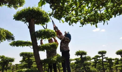 5月20日,肇東市農(nóng)戶正在蘇萌園林產(chǎn)業(yè)扶貧基地為成品造型樹(shù)進(jìn)行修枝整形。