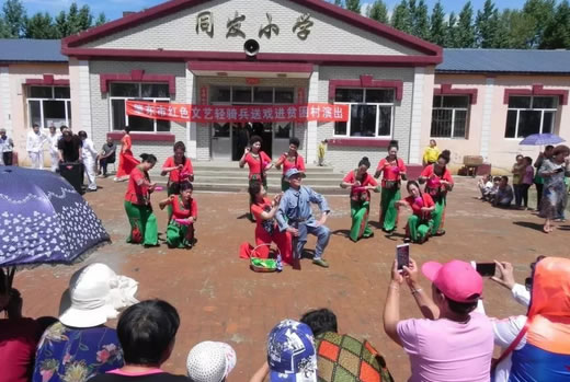 為豐富貧困村屯的人民精神文化生活,助力脫貧攻堅(jiān)。6月29日,市文廣新局組織紅色文藝輕騎兵小分隊(duì),深入我市東發(fā)鄉(xiāng)同發(fā)村開(kāi)展文化扶貧送戲下鄉(xiāng)活動(dòng)。