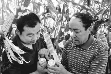 邵春禹(右)與農(nóng)戶一起分享增產(chǎn)心得。