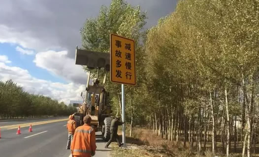 新增設(shè)安全行車警示標(biāo)志顏色鮮艷、醒目美觀,提升了安全警示效果、消除了安全隱患,為公路安全暢通提供了有力保障。
