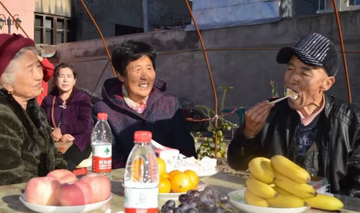 信通社區(qū)為老人們送去了香蕉、蘋(píng)果、葡萄等水果,特意定做了一個(gè)蛋糕,祝福老人們幸福平安、健康長(zhǎng)壽。