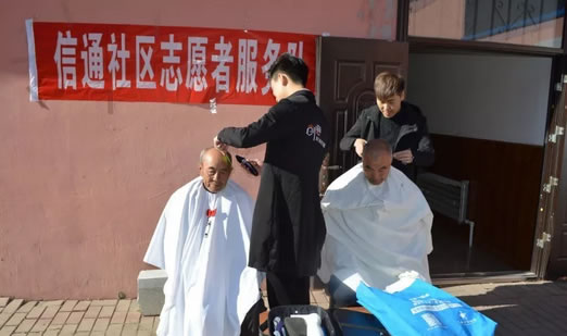 信通社區(qū)志愿者服務(wù)隊(duì)為老年公寓的老人們進(jìn)行了免費(fèi)理發(fā),解決了許多高齡老人出門(mén)理發(fā)難的問(wèn)題。
