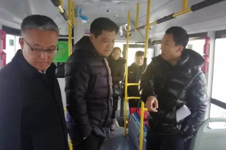 在市公汽公司公交總站對運營情況進行實地檢查時,徐曉平登上新能源公交車,向公汽公司相關(guān)人員了解新能源電動公交車的安全性能及耗電情況。檢查中他強調(diào),公汽公司要繼續(xù)加快車輛轉(zhuǎn)型升級步伐,切實做好“元旦”“春節(jié)”期間的公交安全運營工作,給廣大市民提供一個安全舒適的出行環(huán)境。