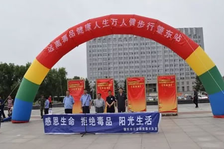 為進(jìn)一步加大禁毒宣傳教育力度,提高廣大群眾對(duì)毒品危害的認(rèn)識(shí),擴(kuò)大禁毒宣傳覆蓋面和影響力,展示禁毒工作成果,營(yíng)造濃厚的全民禁毒氛圍,6月26日,市禁毒委在政府廣場(chǎng)組織開(kāi)展了以“遠(yuǎn)離毒品、健康人生、萬(wàn)人健步行”為主題的國(guó)際禁毒日集中宣傳活動(dòng)。市禁毒委主任、市委常委、政法委書(shū)記王明天,市禁毒委副主任、公安局局長(zhǎng)張國(guó)輝及禁毒委相關(guān)成員單位負(fù)責(zé)同志及社會(huì)各界群眾和學(xué)生代表近萬(wàn)人參加集中宣傳活動(dòng)。