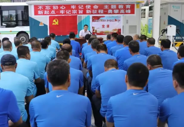 為進(jìn)一步深入學(xué)習(xí)貫徹黨的十九大精神和習(xí)近平總書記重要講話和重要指示精神,按照市委和市交通運(yùn)輸黨組的統(tǒng)一部署,公汽公司黨支部在新落成的公交新能源充電站舉辦了“不忘初心 牢記使命”主題教育活動,喜迎建黨98周年,為新中國成立70周年獻(xiàn)禮。公司黨支部書記楊維旭以“新起點—牢記使命 新征程—勇攀高峰”為題,為公司全體黨員及優(yōu)勝員工講了一堂專題黨課。