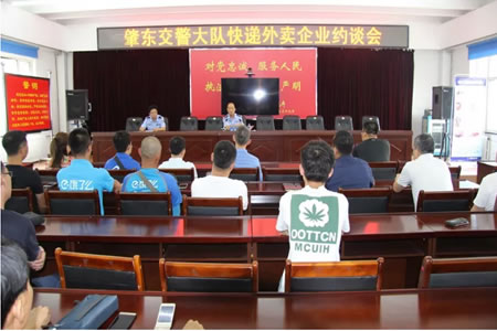 為進(jìn)一步督促企業(yè)落實(shí)主體責(zé)任,規(guī)范快遞外賣(mài)車(chē)輛通行秩序,有效提升全市道路交通管理水平,近日,肇東市公安局交警大隊(duì)組織召開(kāi)了全市快遞外賣(mài)企業(yè)約談會(huì),對(duì)全市18家快遞外賣(mài)企業(yè)進(jìn)行集中約談,副大隊(duì)長(zhǎng)曲斌主持會(huì)議。